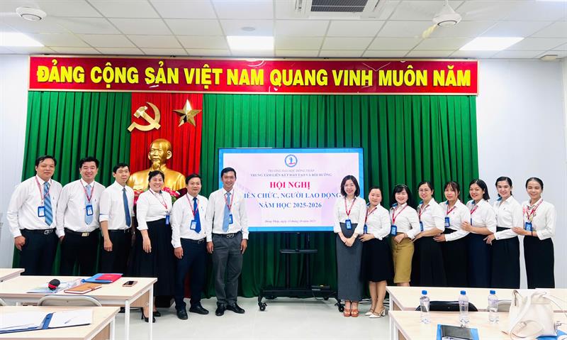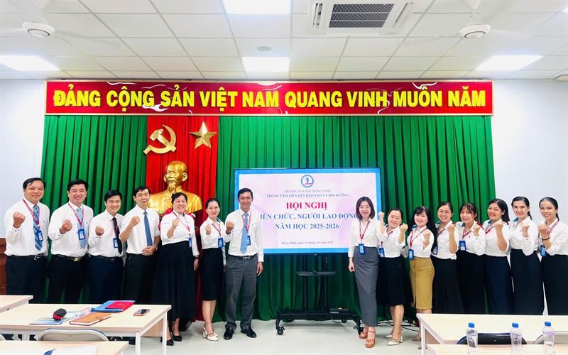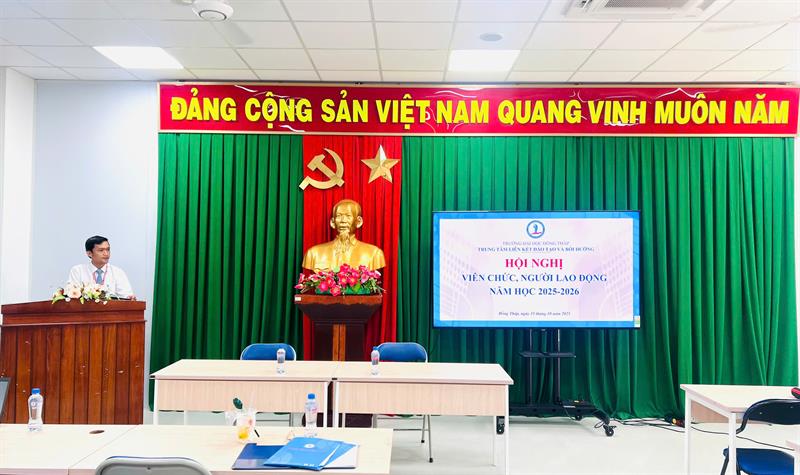 Chiều ngày 15/10/2025, Trung tâm Liên kết Đào tạo và Bồi dưỡng – Trường Đại học Đồng Tháp đã long trọng tổ chức Hội nghị Viên chức, Người lao động năm học 2025–2026 tại Phòng họp số 1, Tòa Khát vọng. Hội nghị diễn ra trong không khí nghiêm túc, dân chủ và trách nhiệm, với sự tham dự đầy đủ của toàn thể viên chức, người lao động Trung tâm cùng đại diện lãnh đạo Nhà trường.